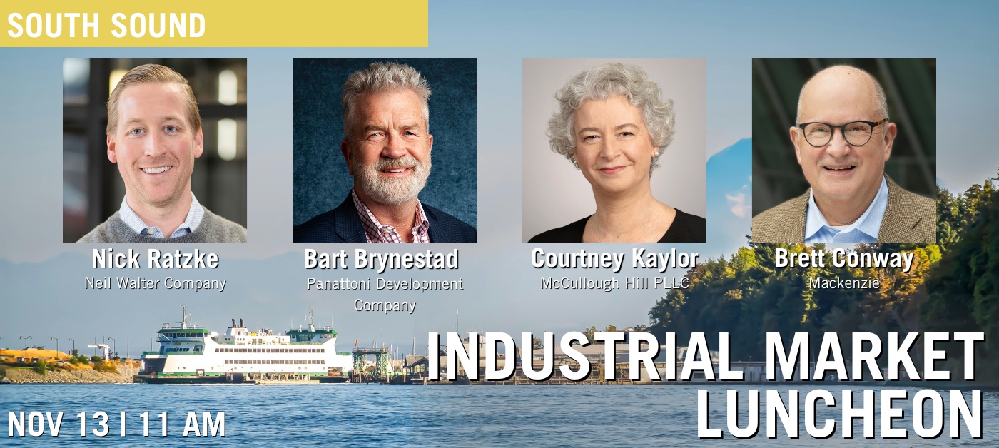 The South Sound Committee invites you to join us for our Industrial Market Luncheon, where we’ll take a deep dive into the forces shaping today’s industrial market! Our panel of experts will delve into the modern challenges shaping development in the South Sound, including tariffs and construction pricing, Pierce County industrial land use, energy codes, rising insurance costs, and more. Discover what’s working, what’s not, and where new opportunities lie in this evolving market. Speakers include: